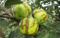 葉片染病葉背面現(xiàn)黃色、裸露的夏孢子堆,大小0.2—0.4mm,圓形至橢圓形,包被破裂后變?yōu)槌赛S色,后又褪為淺黃色,在與夏孢子堆對(duì)應(yīng)的葉正面現(xiàn)紅褐色斑塊...
