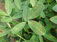 發(fā)病規(guī)律:春花生早播病輕,秋花生早播則病重。施氮過(guò)多,密度大,通風(fēng)透光不良,排水條件差,發(fā)病重。水田花生較旱田病重。高溫、高濕、溫差大利于病害蔓延。
