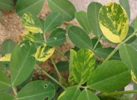 癥狀:花生出苗后即見(jiàn)發(fā)病。初在頂端嫩葉上現(xiàn)褪綠黃斑,葉片卷曲,后發(fā)展為黃綠相間的黃花葉、網(wǎng)狀明脈和綠色條紋等癥狀。病害發(fā)生后期癥狀有減輕趨勢(shì)。