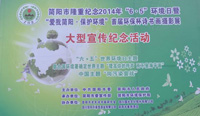 2014年6月5日,由簡陽市委、市政府主辦,市委宣傳部、市環(huán)保局承辦的《隆重紀念2014年“6.5”世界環(huán)境日暨“愛我簡陽 保護環(huán)境”首屆環(huán)保杯詩書畫攝影展》在簡陽市人民公園舉行。本次活動突出宣傳了聯(lián)合國環(huán)境署確定的世界主題“提高你的呼聲,而不是海平面”、中國主題“向污染宣戰(zhàn)”。