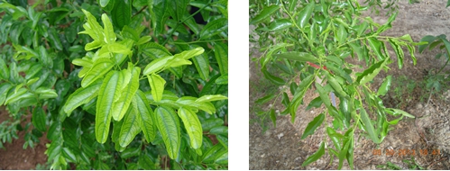 2013年4月下旬,在陜西大荔楊家棟冬棗園,針對(duì)缺素冬棗樹,噴施國光絡(luò)微2次,間隔15天噴施一次,2013年5月20日,觀察缺素棗樹,葉片轉(zhuǎn)綠,棗吊生長正常,花蕾分化好。