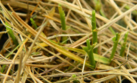 1.年發(fā)生代數(shù) 一年4-5代,在山東和浙江經(jīng)調(diào)查都是如此。以蛹在土下3-5厘米處越冬。(以危害白三葉為例:2代開始(7月上旬)在三葉草草坪上開始為害,出現(xiàn)一個(gè)個(gè)蟲團(tuán);3、4代(8-9月)為害加重,為主害代,并出現(xiàn)世代重疊,能成片成片吃光草坪,使綠化景觀效果遭受到嚴(yán)重的破壞。)